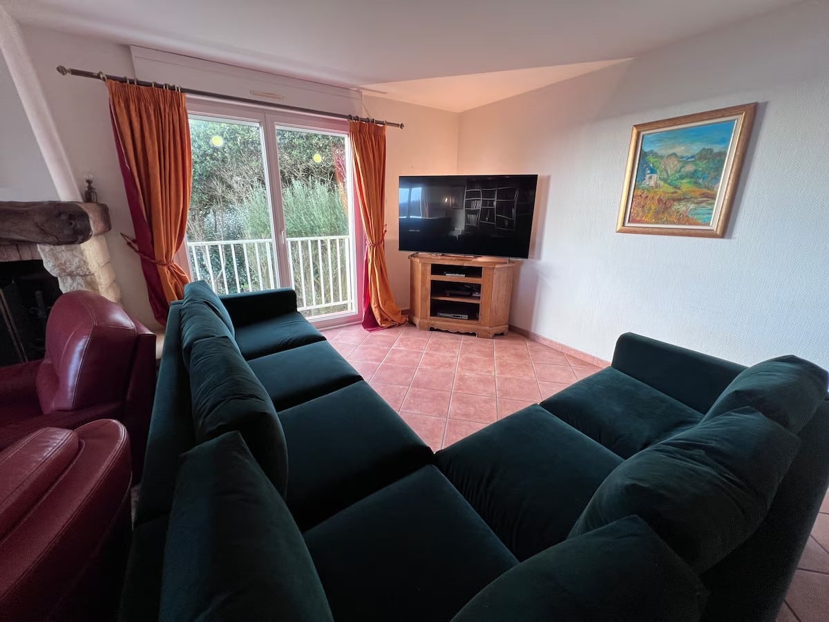 Villa de Kerlou is located next to a large public garden and park. The nearest neighbour is across the road but the house and garden are not overlooked ensuring lovely peace and quiet for this Brittany villa by the sea.