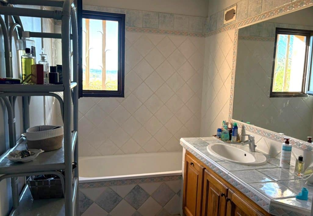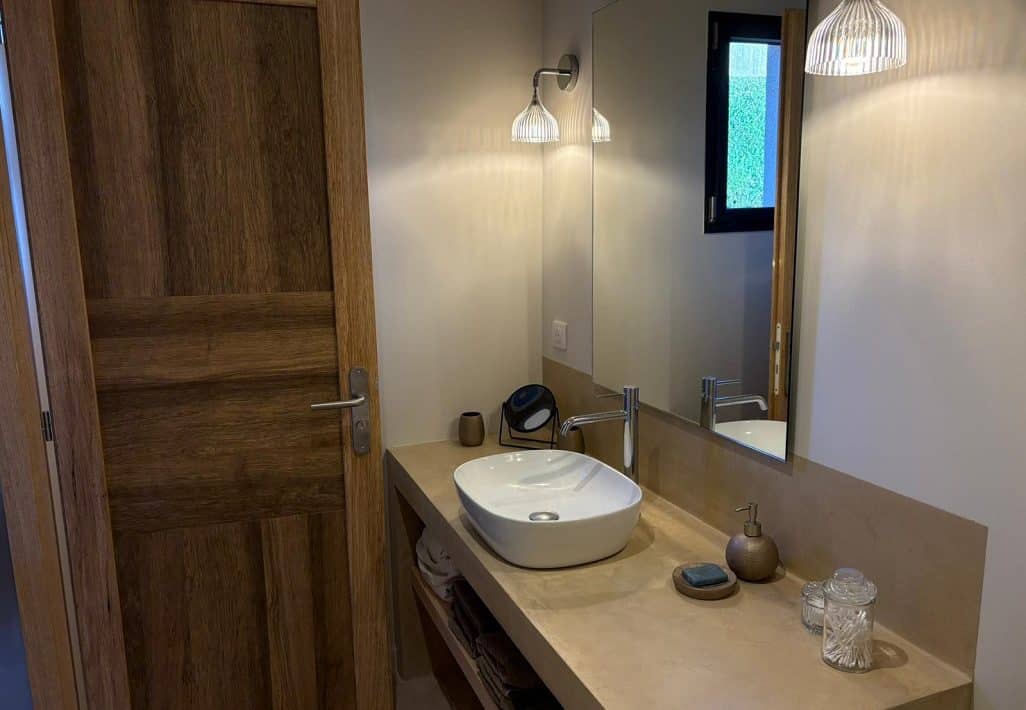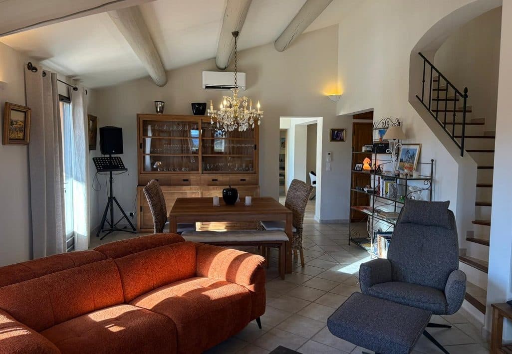 The villa can sleep up to eight people in four double bedrooms and offers a generous three bathrooms, two of which are en suite. There is one bedroom on the ground floor with its own shower room and the other three bedrooms are on the first floor. One of these bedrooms has a terrace with a table and chairs to enjoy morning croissants and a coffee…perfect!